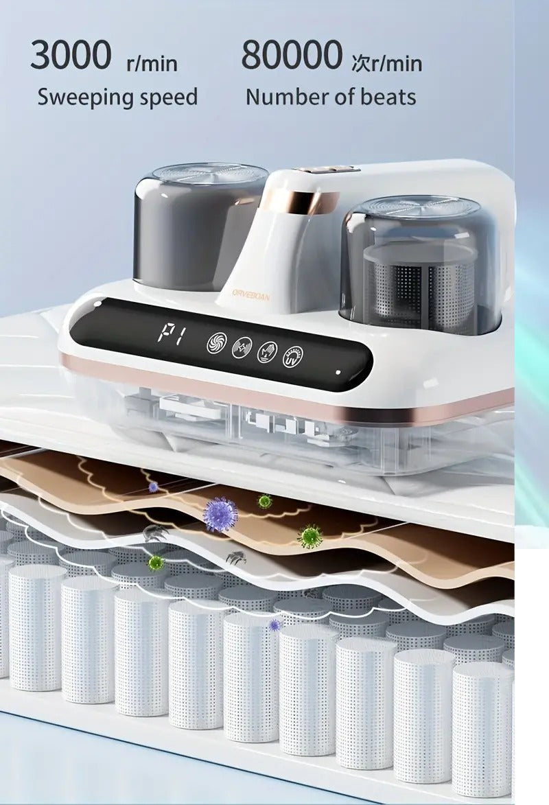 Elimina ácaros, polvo, cabello y alérgenos de forma rápida y eficaz con esta aspiradora especialmente diseñada para colchones, almohadas, sofás y cunas. Su tecnología avanzada garantiza una limpieza profunda y un entorno más saludable.